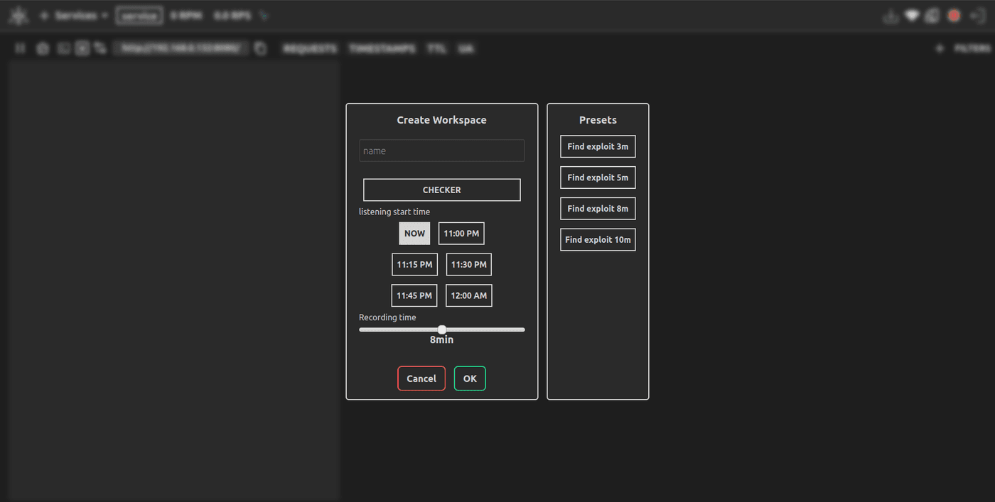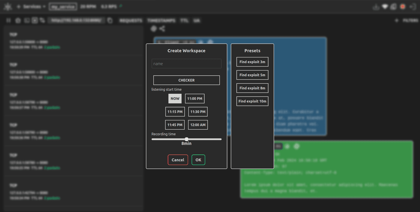 - Ability to listen to a service inside a workspace, where every n incoming sessions are saved in the DB