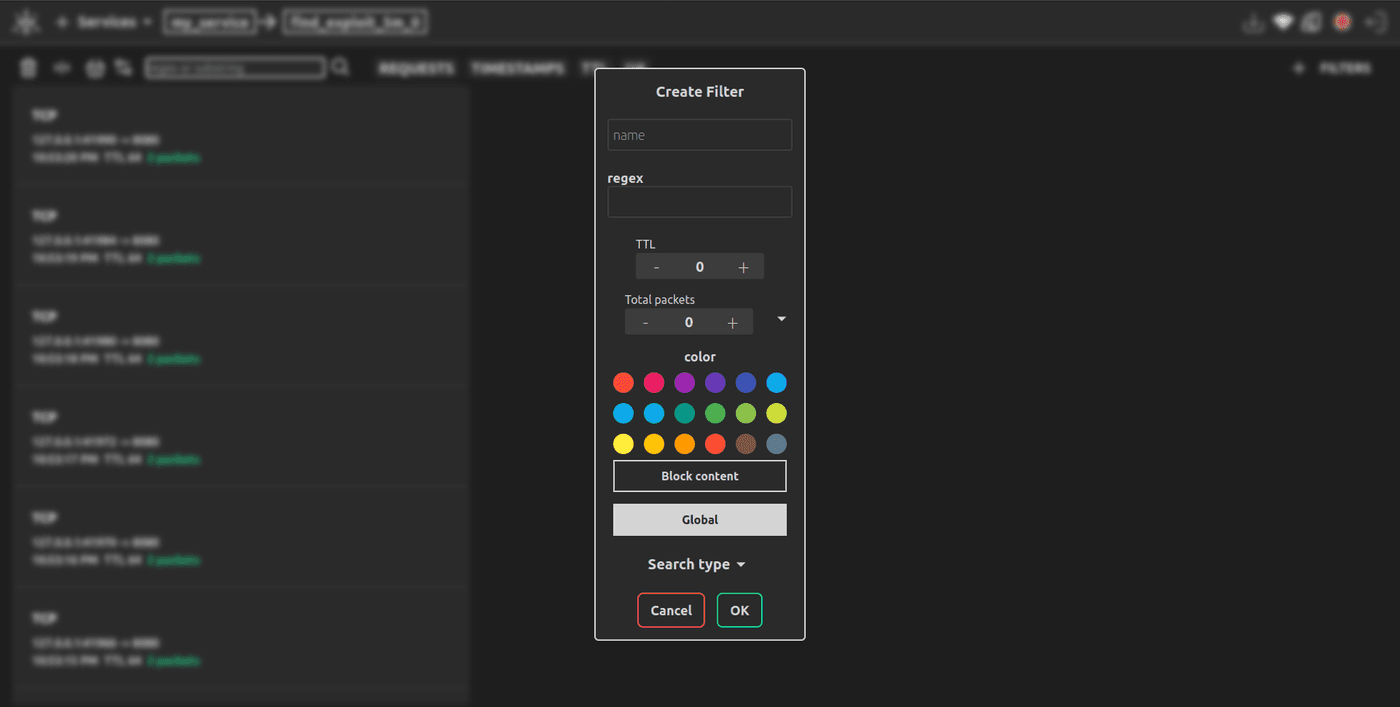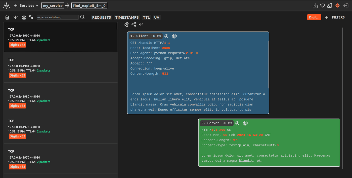 - Network port traffic statistics by TTL, User-Agent (if service is web), packet average delay between packets, number of client requests in session