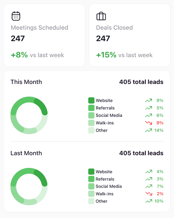 Lead follow-up rate improved by ~20%, as upcoming meetings and high-value clients are surfaced directly on the dashboard.