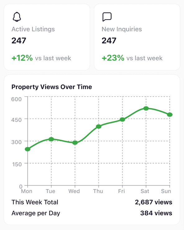 Reduce admin overhead because updates, filters, and property details live in a single interface instead of across spreadsheets and chats.