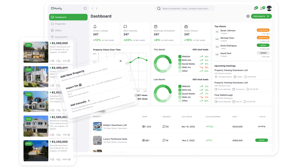 Every feature in the Roofy dashboard was designed not just for usability, but to reinforce clarity, control, and trust — three essentials for any real estate professional who relies on personal reputation and repeat clients.