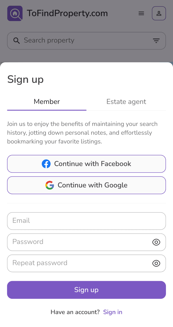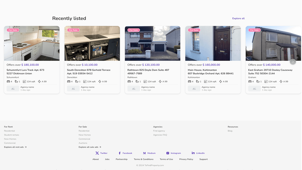 ToFindProperty is a rental marketplace built around real-estate agents who manage and publish property listings on behalf of owners.